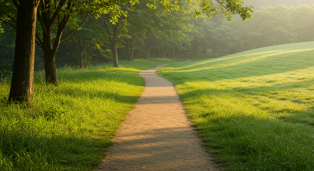 膝に優しいウォーキングコース選び|土の道と芝生で関節を守る歩き方